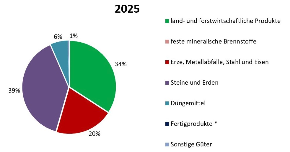 Die Verteilung des Umschlags auf Gütergruppen: